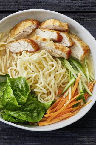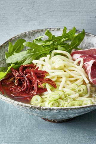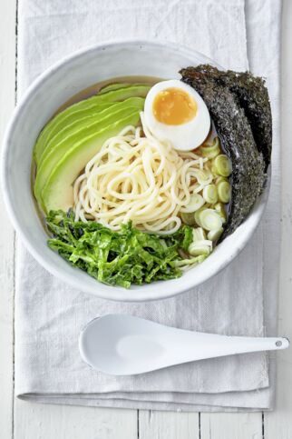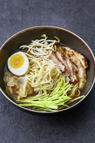 Wenn die Japaner eine Suppe kochen, nutzen sie die Ramen für unterschiedliche Gerichte. Bei Shoyu-Ramen handelt es sich um eine Hühnerbrühe mit Soja, Mirin und Sake.