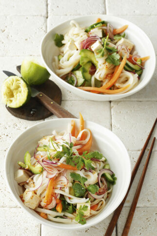 Reisnudeln gibt es genau wie Nudeln aus Weizen in unterschiedlichen Formen und Größen. Manche sind sehr dünn und fein, andere breit und dick. Im Salat kommen sie aber immer gut zur Geltung. Zudem sind sie eine klasse Alternative für alle, die sich glutenfrei ernähren.