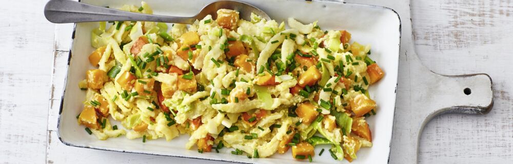 Unser Tipp: Wenn die Spätzle nicht sofort verzehrt werden sollen, kannst du sie mit etwas Butter in der Pfanne anbraten. Das gibt extra Geschmack.