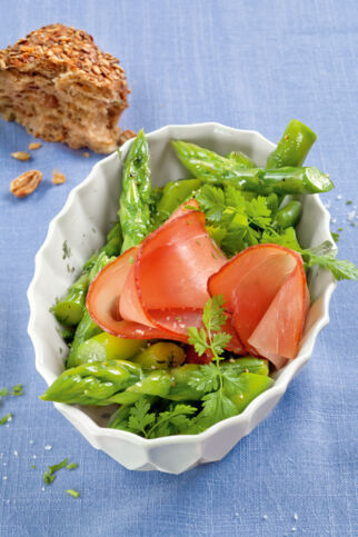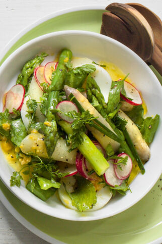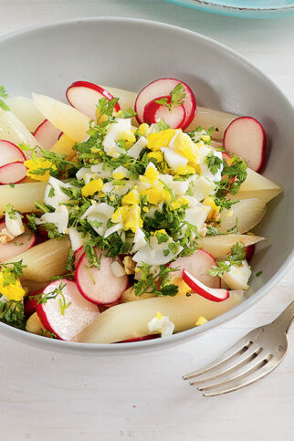 Nutze die kurze Saison und die langsam ansteigenden Temperaturen dazu Spargel als Salat zu genießen. Hier findest du unsere besten Spargelsalat-Rezepte!