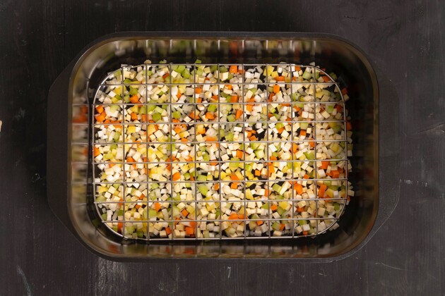 In einem Bräter schmort das Fleisch mehrere Stunden bei niedrigen Temperaturen, damit es zart und saftig wird. Praktisch sind Bräter mit einem integrierten Grilleinsatz, auf dem du das Fleisch platzieren kannst. Darunter können gleichzeitig Gemüse und Saucenansatz zubereitet werden, ohne dass das Fleisch während der Garzeit im Sud liegt.