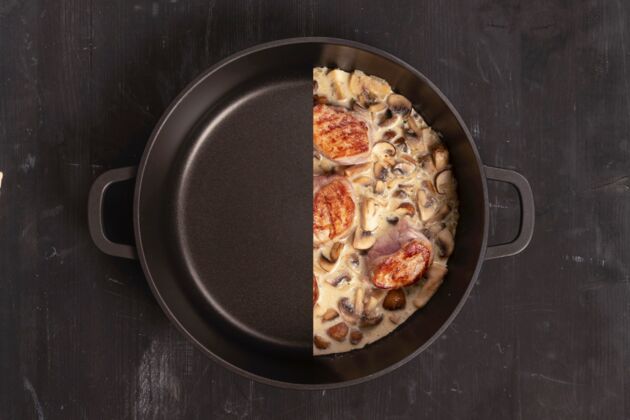 Der Pfannenrand ist der wichtigste Unterschied zwischen einer einfachen Brat- und einer Schmorpfanne. Zum Schmoren brauchst du Platz in der Pfanne, damit diese genügend Flüssigkeit aufnehmen kann. Deswegen haben Schmorpfannen immer einen hohen Rand. Außerdem sind ein backofenfester Deckel und ein oder besser noch zwei feuerfeste Griffe wichtige Merkmale einer guten Schmorpfanne. Der zweite Griff der Schmorpfanne bietet sich hier vor allem an, da die Pfannen leer schon recht groß und schwer sind und der zweite Griff beim Hochheben der gefüllten Pfanne einfach mehr Sicherheit gibt.