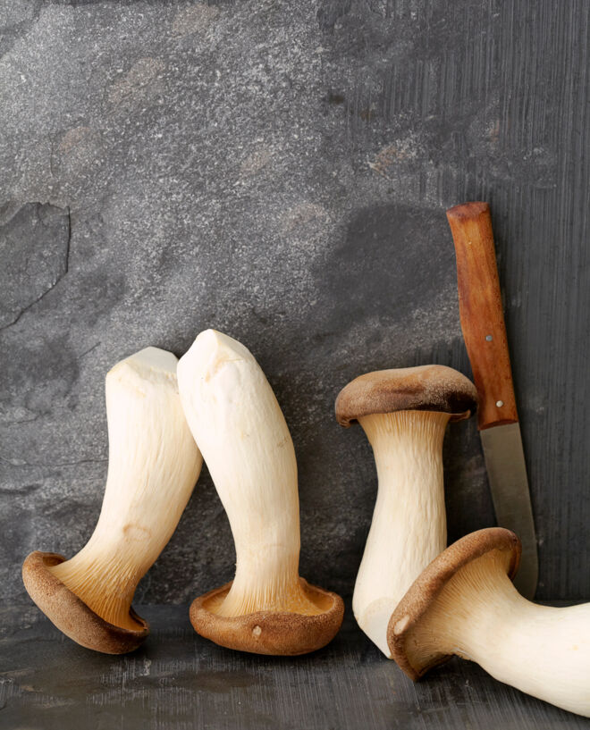 Ein einziger Kräuterseitling kann bis zu 300 Gramm schwer werden. Was aber nicht unbedingt bedeutet, dass der Pilz dadurch an Geschmack einbüßt. Ganz im Gegenteil: sein aromatischer und würziger Eigengeschmack machen ihn zu einer beliebten Beilage von beispielsweise Zwiebelkuchen, Pasta, Ristotto oder Quiche. In der Zubereitung sind die Delikatessen unkompliziert: einfach mit einem Pinsel oder Küchenpapier leicht säubern und die angetrockneten Stielenden entfernen. Sollten die Enden frisch und saftig sein, kannst du sie auch gerne mit verwenden. Aufgrund des ähnlichen Geschmacks von Steinpilzen, passen Kräuterseitlinge als gleichwertiger Ersatz für viele Steinpilz-Rezepte. Ansonsten lassen sie sich auch unkompliziert mit etwas Butter anbraten oder roh genießen.