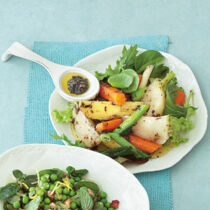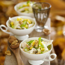 Bunter Salat mit Eierrauten und Garnelen-Crostini