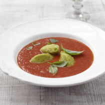 Basilikum-Polenta-Taler mit jungem Gemüse