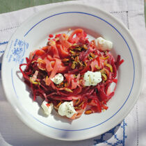 Rote-Bete-Kokos-Bratlinge mit Meerrettichsahne