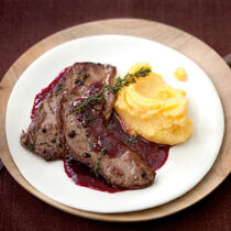 Kartoffeln mit Rotwild-Champignon-Füllung und Sour Cream