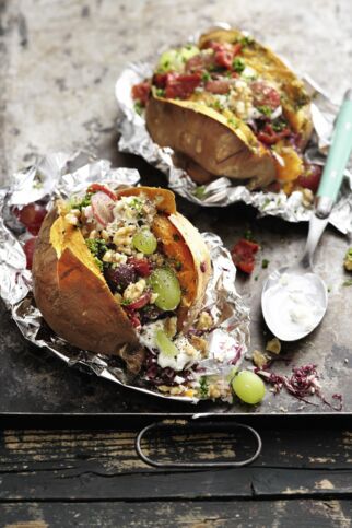 Ein Veggie-Chili mit Süßkartoffeln und schwarzen Bohnen, eine vegane Süßkartoffel-Quiche-Pilz oder raffinierte Süßkartoffelplätzchen mit Rucolabutter – welches vegetarische Rezept wird wohl dein Favorit?