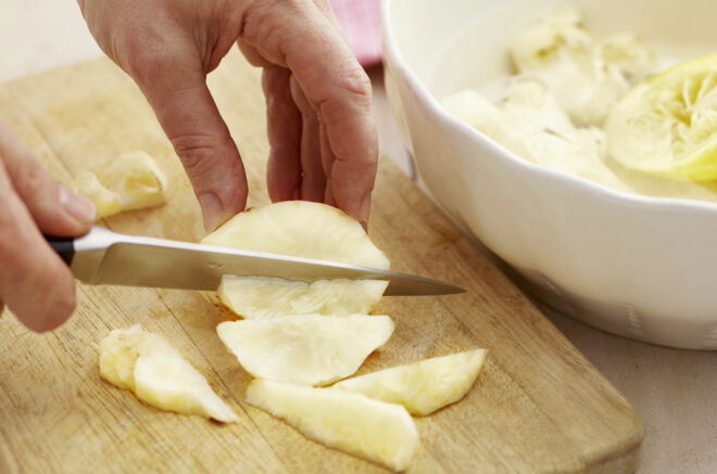 Hebe Topinambur im Gemüsefach auf. Wickle die Knollen dazu - am besten ungewaschen - in ein Stück Papier ein. So bleiben sie locker ein paar Tage frisch.