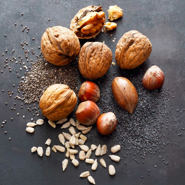 Nicht nur zu Weihnachten sind Nüsse ein knackiger Knabberspaß und eine beliebte Backzutat, die kleinen Energiebomben sind rund ums Jahr eine gesunde Eiweißquelle. Die beliebtesten Nüsse (und Samen) stellen wir dir hier vor.