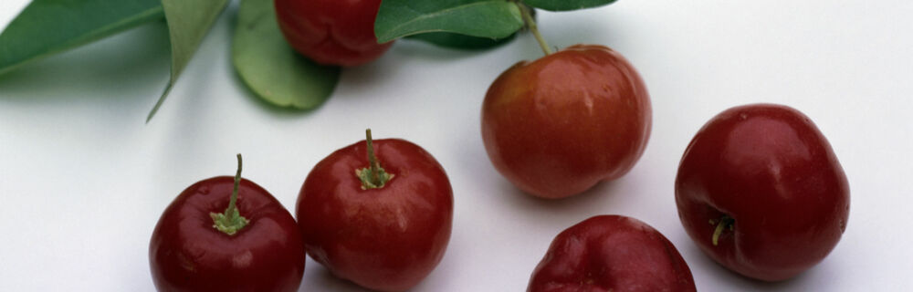 Die aus Mittelamerika stammende Frucht sieht unserer Kirsche zum Verwechseln ähnlich: gelborange bis scharlachrot, rund oder oval, die Haut glatt, glänzend und dünn. Unter den Vitamin-C-reichen Früchten ist sie weltweit der Spitzenreiter: Ihr Ascorbinsäure-Gehalt kann bis zu 100-mal höher liegen als bei der Orange.