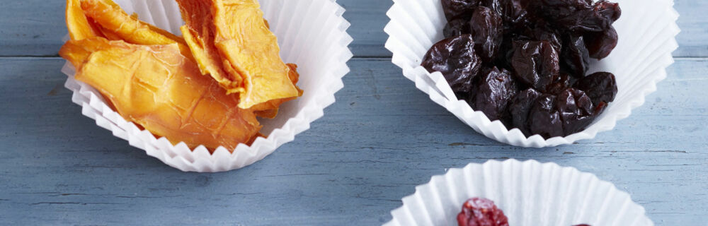 Viele Obstarten bekommen durch die Konzentration der Nährstoffe einen intensiveren Geschmack: Sie werden süßer und gehaltvoller. Getrocknete Feigen, Datteln, Apfelringe, Aprikosen, Zwetschgen oder Birnen z. B. sind ein hervorragender und gesunder Snack für zwischendurch. Sie eignen sich aber auch als Backobst (z. B. Feigen, Datteln, Zwetschgen) oder verfeinern süße oder pikante Gerichte (z. B. Korinthen, Pflaumen).