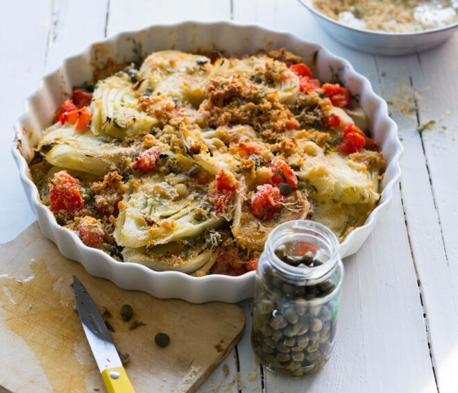 Einsteiger sollten Fenchel mal mit anderem Mittelmeergemüse wie süß-saftigen Tomaten, Paprika oder Oliven probieren. Und auch mit Fisch und Meeresfrüchten kombiniert und durch Weißwein und Safran ergänzt, ist er eine Kostprobe wert. Oder schon mal Fenchel mit Käse getestet? Wahre Fenchel-Freunde sparen sich den Herd und knabbern ihren Liebling roh zu altem Gouda oder einem Stück Parmesan. Doch auch das gefiederte Fenchelgrün gilt es nicht außer Acht zu lassen. Es sieht gut aus, schmeckt auch so und erinnert dabei nicht nur optisch an Dill. Das Gleich gilt für seine Samen. Die kleinen, braunen Körnchen findet man im Gewürzregal, in Fenchelteebeuteln und im chinesischen Fünf-Gewürz-Pulver. Sie passen überall dazu, wozu auch Anis schmecken würde: zu Gurken, eingekochtem Gemüse, würzigen Fischgerichten, in deftigen Brotteig, Suppen und Saucen. Und pur gekaut sorgen sie für frischen Atem.