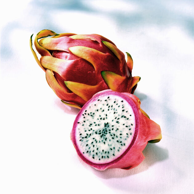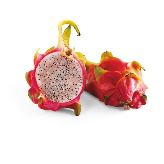 Ein bisschen unförmig und ungewöhnlich sieht die ovalförmige Exotin mit ihrer unebenen Schale aus. Die gelbe oder rote Drachenfrucht gibt’s in Gelb und Rot.