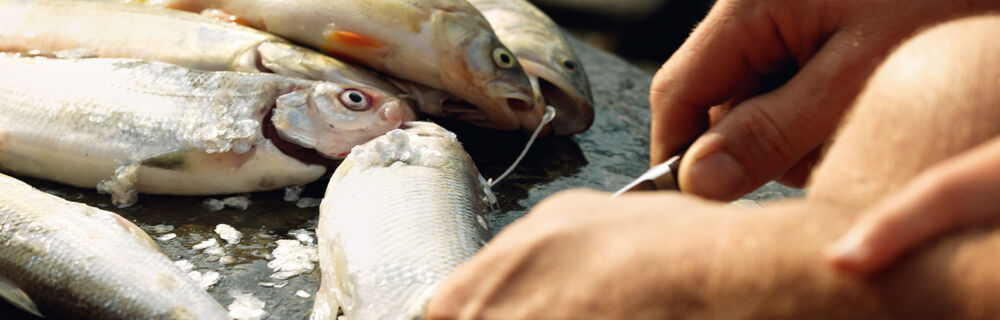 Fisch niemals zu lange herumtragen, sondern zu Hause sofort auspacken, auf einen Teller oder eine Platte legen, mit Teller oder Folie bedecken und ab damit in den Kühlschrank. Dort kann der Fisch einen, maximal zwei Tage bleiben. In den meisten unserer Städte kommen Dienstag und Freitag frische Fische in die Läden – und sind damit am Donnerstag und Montag am ältesten.