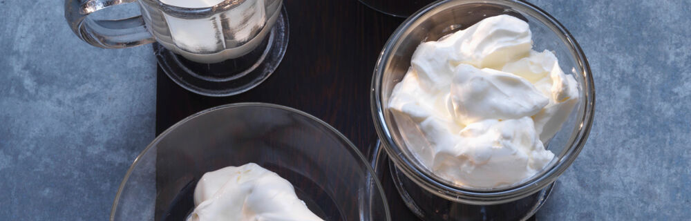 Das Gleiche gilt für Joghurt, wenn er in Suppen oder Ragouts gerührt wird. Wir kennen ihn besser in Dips und Dressings, die durch ihn erfrischend leicht und säuerlich, werden. Normal sind bei ihm 3,5 bis mageren 0,1 % Fett, nach griechischer oder türkischer Art gerne auch 10 %.