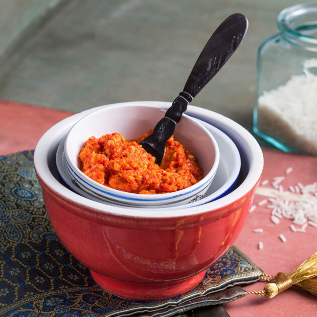Man kann sie fertig kaufen, oder auch ganz einfach selbst machen: Die sehr scharfe indonesische Paste aus so vielen roten Chilis, dass kein asiatischer Mann sie mit dem Löffel essen würde. Man verwendet sie als Zutat zum Kochen, als Dipsauce und als würzende Beigabe. Es gibt zwei Varianten: Sambal Oelek ist scharf, Sambal manis ist süßlich und nicht ganz so scharf.
