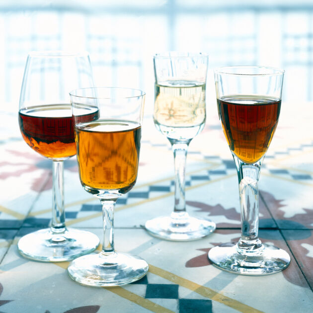 Oloroso: unter Flor gereift; trocken, Nussaroma; bernstein- bis mahagonifarben; 17 bis 20 % Vol. Alk.