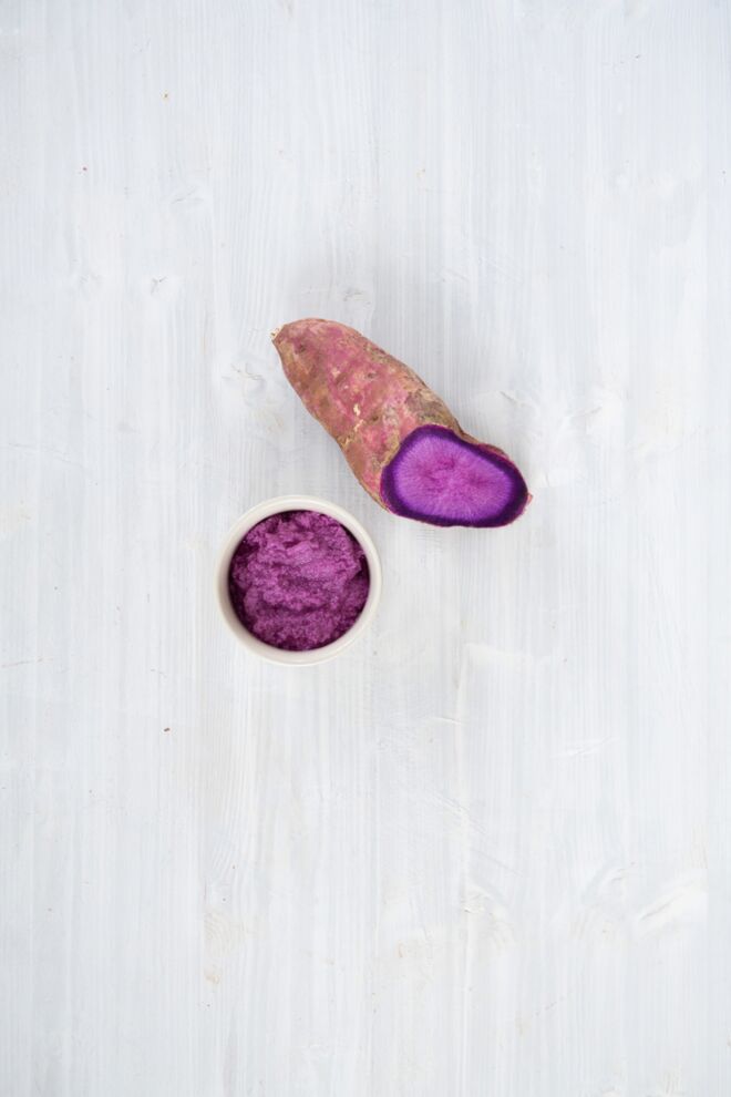 Die Yamswurzel, auch Ube-Wurzel oder Wasseryams genannt ist eine asiatische Knolle, die besonders durch ihre violette Farbe auffällt. Geschmacklich erinnert die Wurzel etwas an Topinambur – nussig und eher süß. Deswegen eignet sich die Ube-Wurzel auch hervorragend für süße Speisen und Desserts.