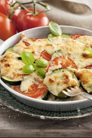 Ja, du kannst deinen Zucchiniauflauf auch vegan zubereiten, schließlich gibt es für jedes tierirische Produkt mittlerweile eine vegane Alternative. Hackfleisch kannst du zum Beispiel einfach durch Sojaschnetzel ersetzen. Auch geriebenen Käse zum Überbacken gibt es mittlwerweile als vegane Alternative. Wichtig dabei ist, dass du den Auflauf oder das Gratin gut würzt. Chili, Tomatenmark, Salz, Pfeffer und einige Knoblauchzehen geben dem Gericht Würze.