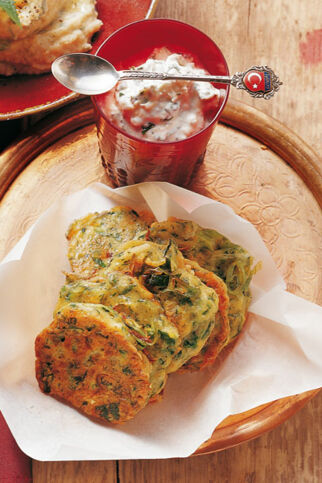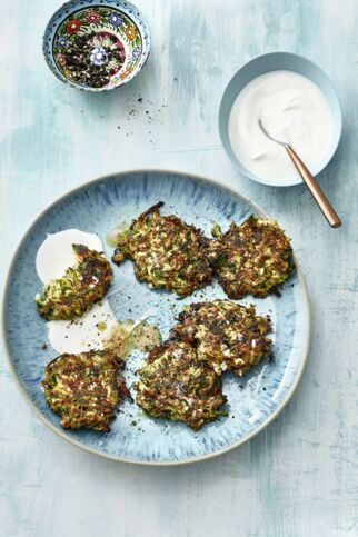 Zu Zucchinipuffern schmeckt ein würziges Tzatziki – probiere einmal, es mit Frühlingszwiebeln zu verfeinern. Auch ein feiner Kräuterquark oder -joghurt passt toll zum Dippen dazu.
