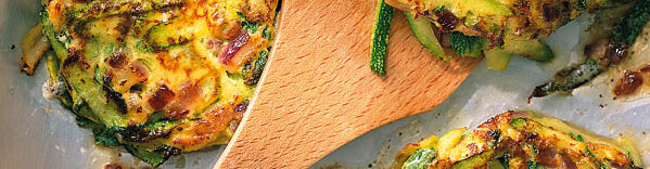 Für klassische Zucchinipuffer rührst du aus Ei und Mehl einen Teig ein und gibst die fein geriebene Zucchini sowie bei Bedarf weiteres Gemüse und Kräuter hinzu. Anschließend verrührst du alles gut und stichst mit einem Spatel kleine Teigportionen ab, die du in der Pfanne mit Öl knusprig brätst. Für eine kalorienarme Low Carb-Variante kannst du anstatt Weizenmehl auch Kichererbsenmehl verwenden. Deine Zucchinipuffer sollen vegan werden? Kein Problem! Verwende anstatt Ei einfach veganen Ei-Ersatz.