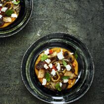 Pilze & Ziegenkäse auf Kürbispüree