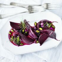 Pistazien-Mandel-Baklava mit süßer Kürbiscreme und Berberitzen