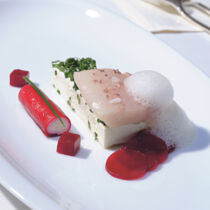Mousse vom Hüttenkäse mit confierter Gebirgsbachforelle